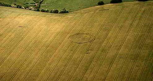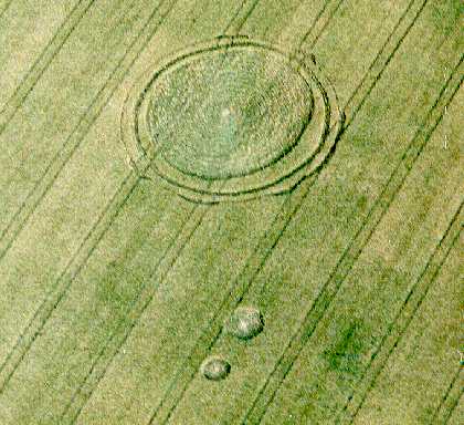 several weeks old with crop turning back up. The main circle is 85ft diameter CW